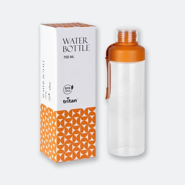 The Nico Tritan Drink Bottle is a durable everyday companion made from Tritan (BPA free) material. It comes with a main PP lid and top Tritan lid for a secure seal. This bottle is available in black, purple, blue, cyan blue, green, orange, and red. It has a 750ml capacity, is packaged in an individual box, and supports roller print for clear custom branding.